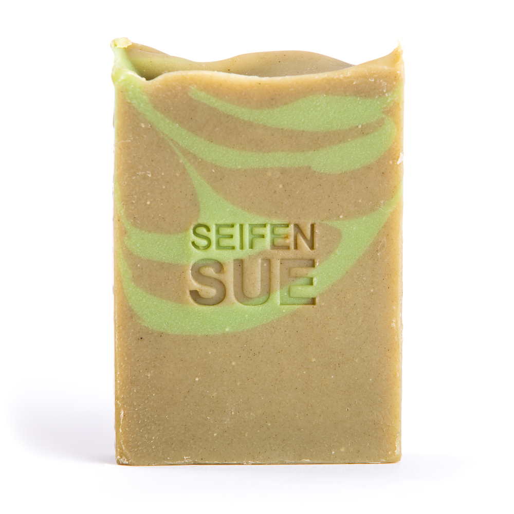 Inhaltsstoffe: Sodium Olivate, Rosmarinus Officinalis Extract, Sodium Cocoate, Sodium Rice Germate, Glycerin, Sodium Castorate, Mel, Parfum (Linalool, Limonen, Citral, Citronellol, Eugenol, Geraniol), Salanum Tberosum Starch, Kaolin, Sodium Chloride, Spirulina Powder, CI 11741, CI 74260, CI 77891