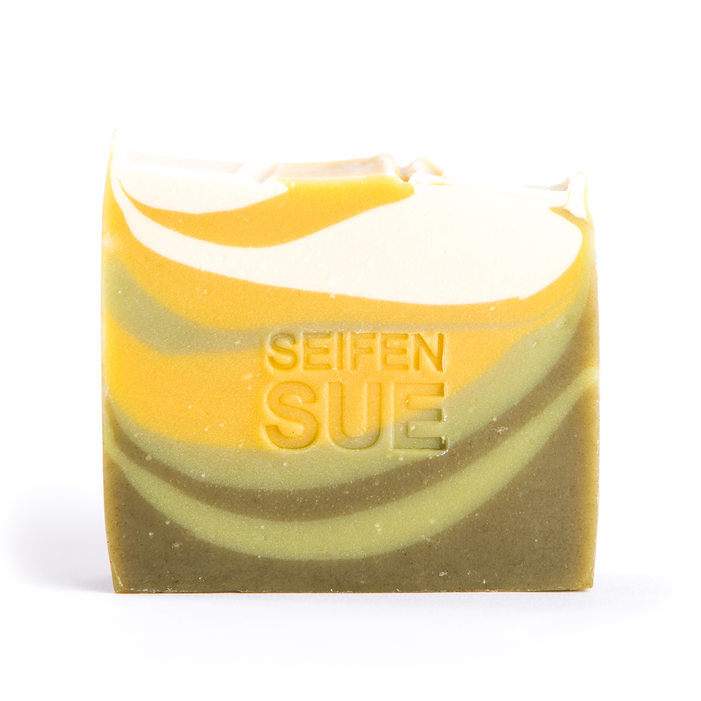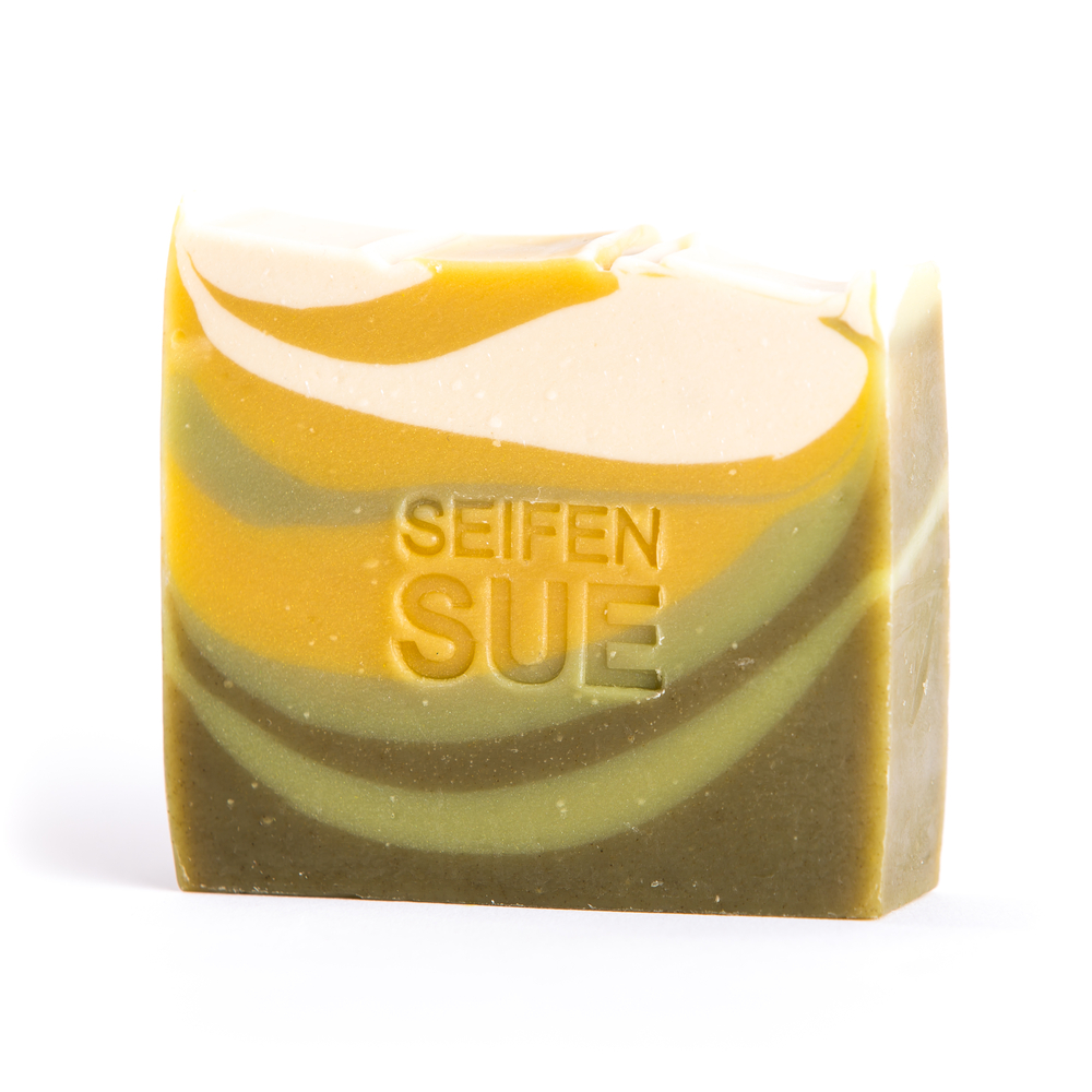 Inhaltsstoffe: Sodium Olivate, Sodium Cocoate, Sodium Rice Germate, Oryza Sativa Extrac, Galium Verum Extract, Bellis Perennis Extract, Glycerin, Stellaria Media Extract, Alchemilla Vulgaris Leaf Extract,Sodium Castorate, Mel, Parfum (Geraniol, Linalool, Limonen, Citronellol, Citral, Eugenol), Salanum Tberosum Starch, Kaolin, Sodium Chloride, Spirulina Powder, CI 11741, CI 74260, CI 77891